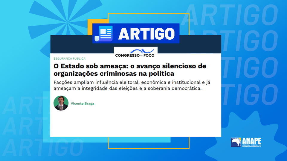 O presidente da Associação Nacional dos Procuradores dos Estados e do Distrito Federal (Anape), Vicente Braga, teve novo artigo publicado