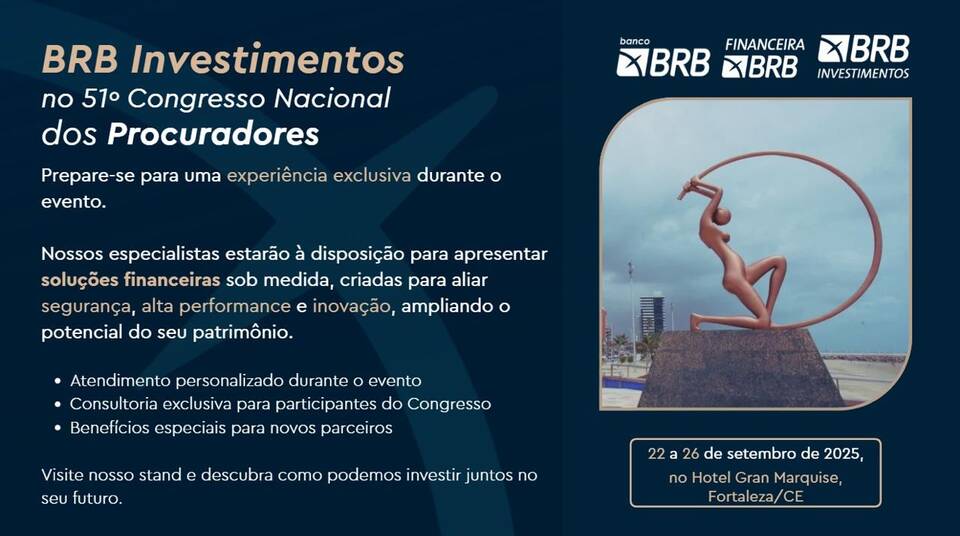 O banco BRB oferecerá condições exclusivas para os participantes do 51º Congresso Nacional dos Procuradores dos Estados e do Distrito Fe