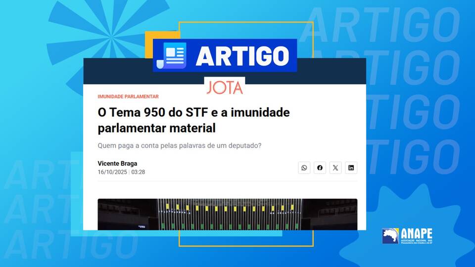 O presidente da Associação Nacional dos Procuradores dos Estados e do Distrito Federal (Anape), Vicente Braga, publicou no portal JOTA o a